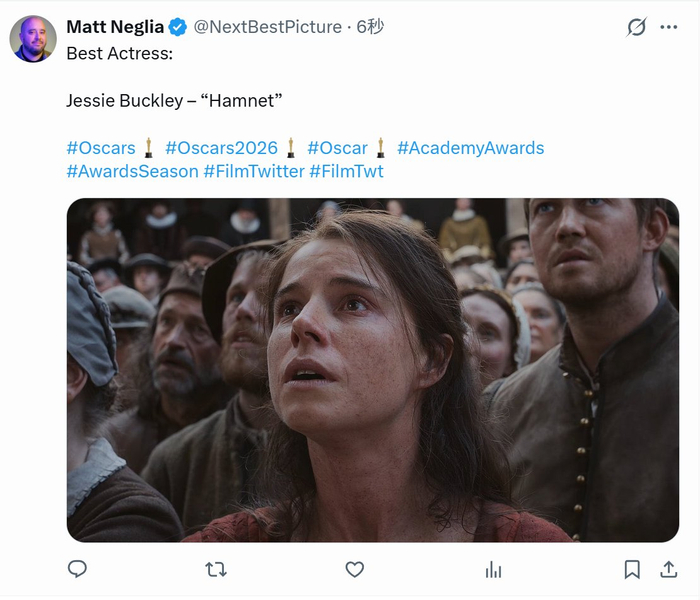 #TNABO# 奥斯卡最佳女主角:杰西·巴克利,《哈姆奈特》!!!!!!#奥斯卡# 发布于:美国...